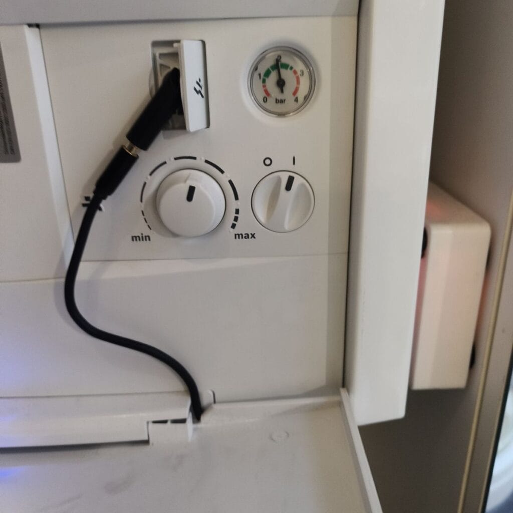 You can plug this adapter onto the end of the EMS service cable and then insert the adapter into the EMS service port of the boiler or heat pump.